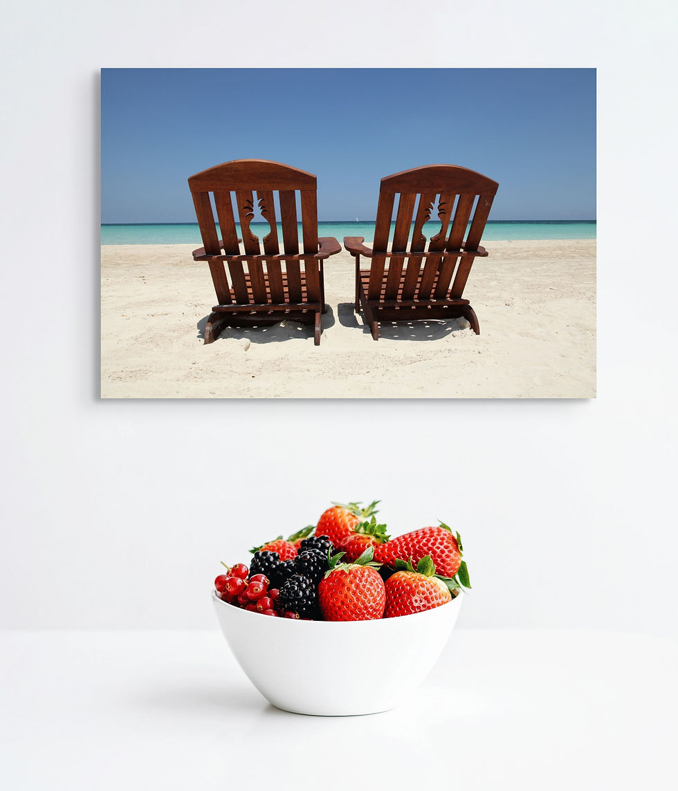 A White Beach Chair and a very large red sun hat in The Bahamas.